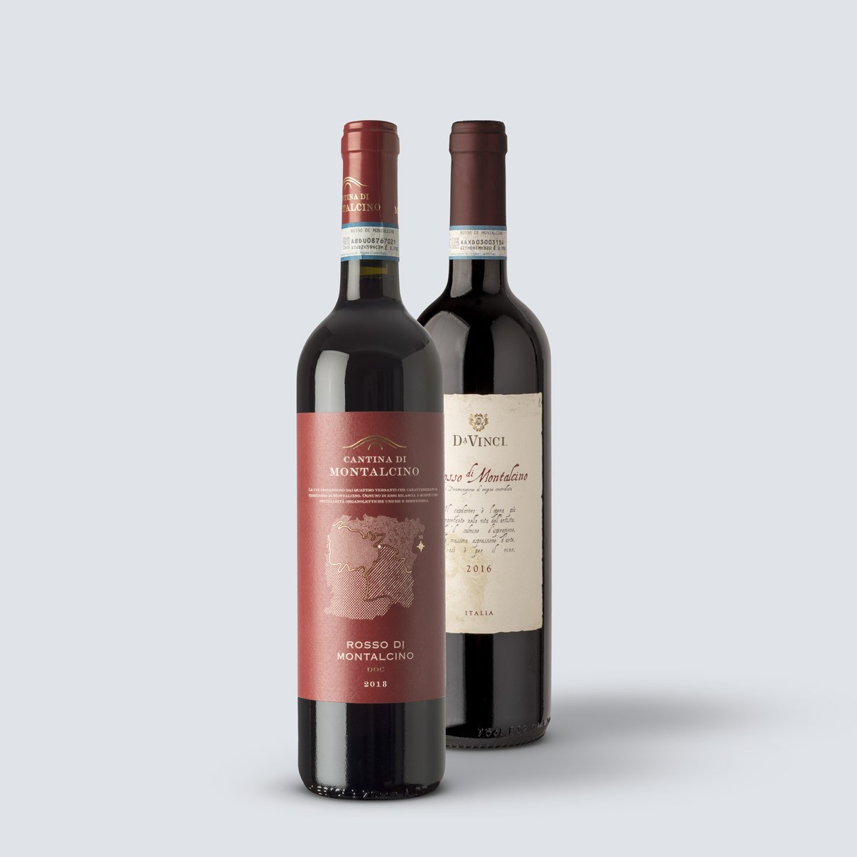 1 Rosso di M. 2018 + 1 Rosso di M. 2016, 3x Rosso di Montalcino 2018, 3x Rosso di Mont. Da Vinci 2016, 6x Rosso di Montalcino 2018, 6x Rosso di Mont. Da Vinci 2016